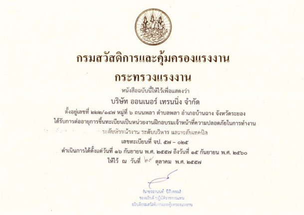 - ระดับหัวหน้างาน / บริหาร / เทคนิค / คปอ. [กรมสวัสดิการและคุ้มครองแรงงาน]